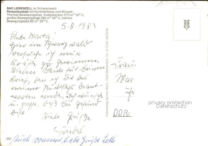 72557313 alte Postkarte Bad Liebenzell Paracelsusbad Kurmittelhaus Mineral Thermal Bewegungsbad postalisch gelaufen Erhaltung siehe scans [KathaD79] KatCode: 11110008235008