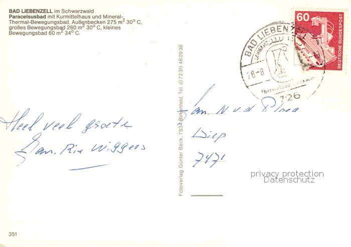 72788051 alte Postkarte Bad Liebenzell Paracelsusbad Kurmittelhaus Thermal Bewegungsbad Nachtaufnahme postalisch gelaufen Erhaltung siehe scans [FriedD77] KatCode: 11110008235008
