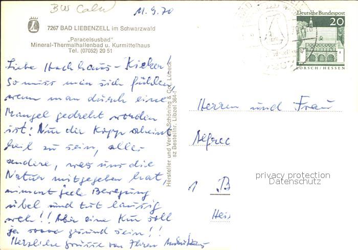 72050405 alte Postkarte Bad Liebenzell Paracelsusbad Mineralbad Thermalbad Kurmittelhaus Schwarzwald postalisch gelaufen Erhaltung siehe scans KatCode: 11110008235008