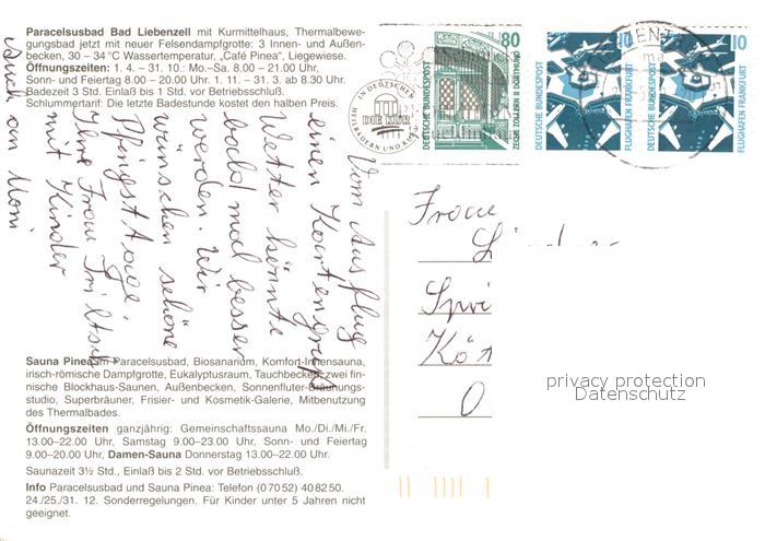 73173750 alte Postkarte Bad Liebenzell Paracelsusbad mit Sauna-Pinea postalisch gelaufen Erhaltung siehe scans [LiesaD40] KatCode: 11110008235008