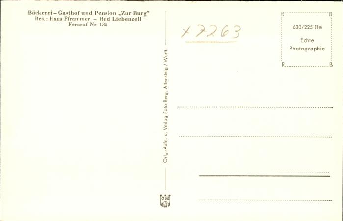 41207926 Bad Liebenzell Pension Zur Burg postalisch nicht gelaufen gute Erhaltung Alte Ansichtskarte Postkarte hz_U Katcode 11110008235008
