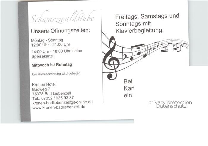 72582653 Bad Liebenzell Restaurant Schwarzwaldstube Kronen Hotel postalisch nicht gelaufen Werbekarte (keine Postkarte) Erhaltung siehe scans [FriedD77] KatCode: 11110008235008