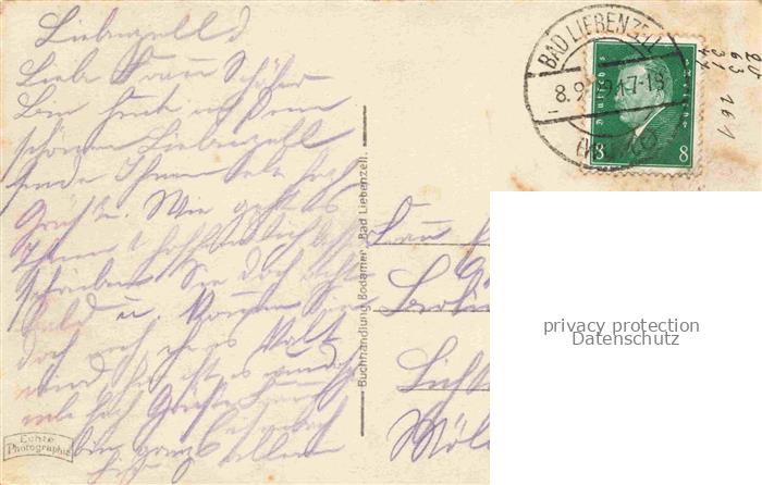 74037183 alte Postkarte BAD LIEBENZELL Teilansicht Blick von Sueden postalisch gelaufen Erhaltung siehe scans [FriedD77] KatCode: 11110008235008