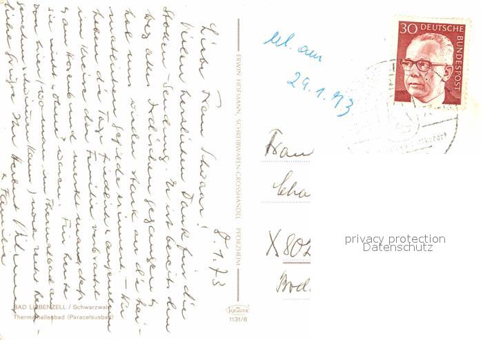 72825218 alte Postkarte Bad Liebenzell Thermalhallenbad Paracelsusbad Schwarzwald postalisch gelaufen Erhaltung siehe scans [FriedD77] KatCode: 11110008235008