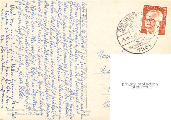 72970295 alte Postkarte Bad Liebenzell Thermalhallenbad Paracelsusbad postalisch gelaufen Erhaltung siehe scans [FriedD77] KatCode: 11110008235008