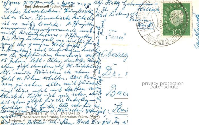 73146685 alte Postkarte Bad Liebenzell Unterlegenhardt Burghalde Paracelsus Haus Fliegeraufnahme Original Straehle Bild Nr 8-1743 postalisch gelaufen Erhaltung siehe scans [FriedD77] KatCode: 11110008235008