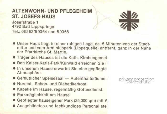 72761047 Bad Lippspringe Altenwohn- und Pflegeheim St. Josefs-Haus postalisch nicht gelaufen Werbekarte (keine Postkarte) Erhaltung siehe scans [LiesaD40] KatCode: 11110005774008