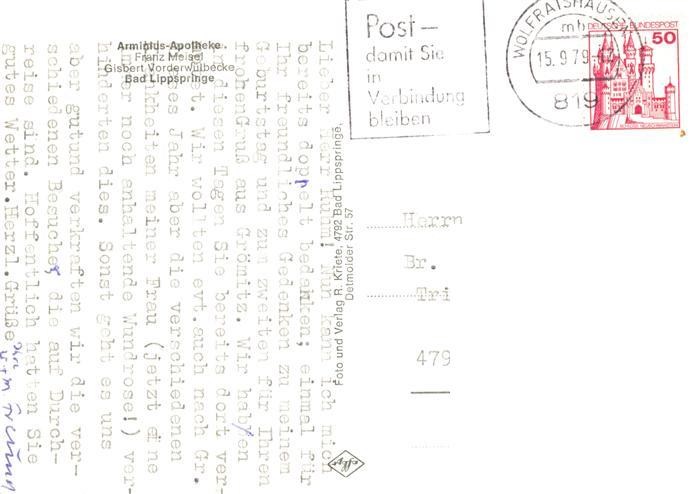 73874841 alte Postkarte Bad Lippspringe Arminius Apotheke postalisch gelaufen Erhaltung siehe scans [WerneD78] KatCode: 11110005774008