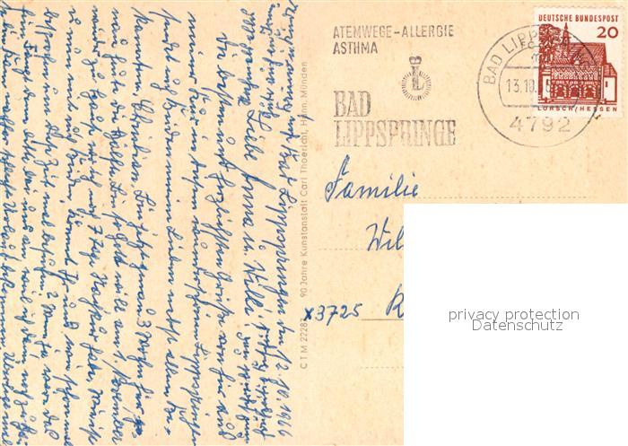 72970117 alte Postkarte Bad Lippspringe Arminius-Park Kaiser-Karls-Park postalisch gelaufen Erhaltung siehe scans [NatalD47] KatCode: 11110005774008