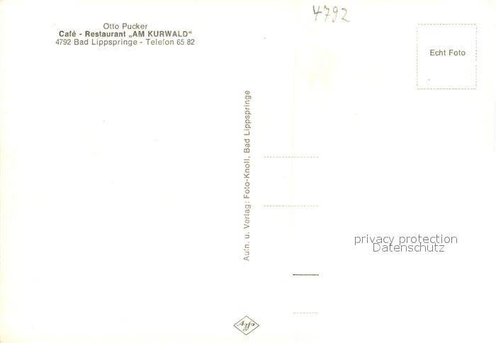 73705638 Bad Lippspringe Cafe-Restaurant Am Kurwald postalisch nicht gelaufen Erhaltung siehe scans [LiesaD40] KatCode: 11110005774008
