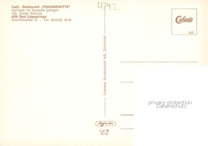 73865509 Bad Lippspringe Cafe Restaurant Fischerhuette Teich postalisch nicht gelaufen Erhaltung siehe scans [FriedD77] KatCode: 11110005774008