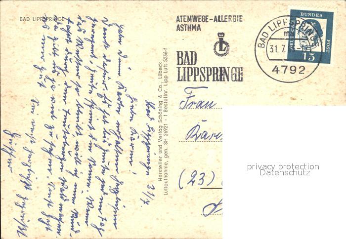 alte Postkarte Bad Lippspringe Fliegeraufnahme postalisch gelaufen Erhaltung siehe scans
