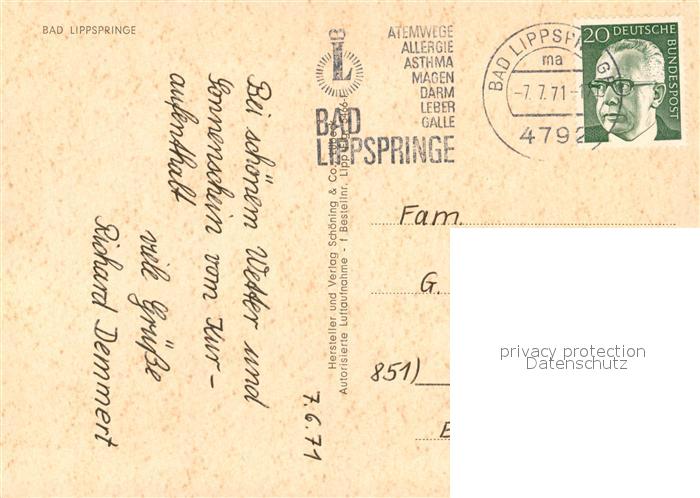 73026257 alte Postkarte Bad Lippspringe Fliegeraufnahme postalisch gelaufen Erhaltung siehe scans [KathaD81] KatCode: 11110005774008