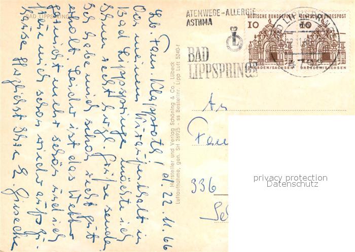 72960066 alte Postkarte Bad Lippspringe Fliegeraufnahme postalisch gelaufen Erhaltung siehe scans [WerneD78] KatCode: 11110005774008