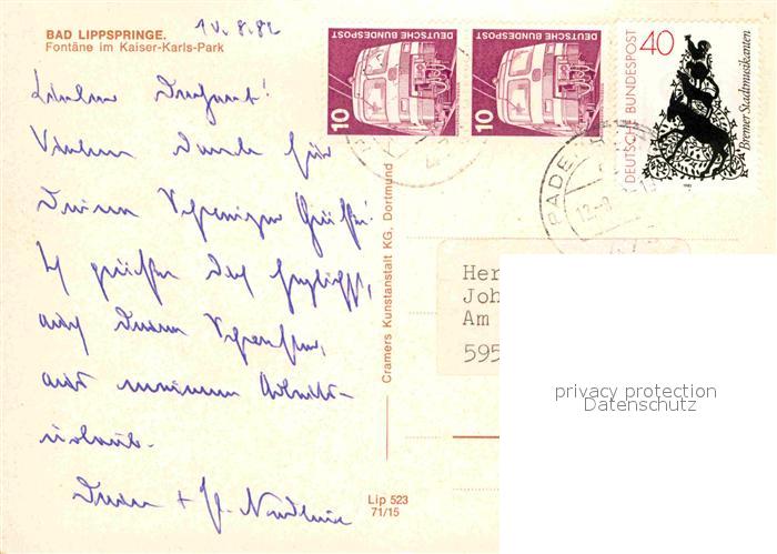 72723115 alte Postkarte Bad Lippspringe Fontaene im Kaiser Karls Park postalisch gelaufen Erhaltung siehe scans [FriedD77] KatCode: 11110005774008