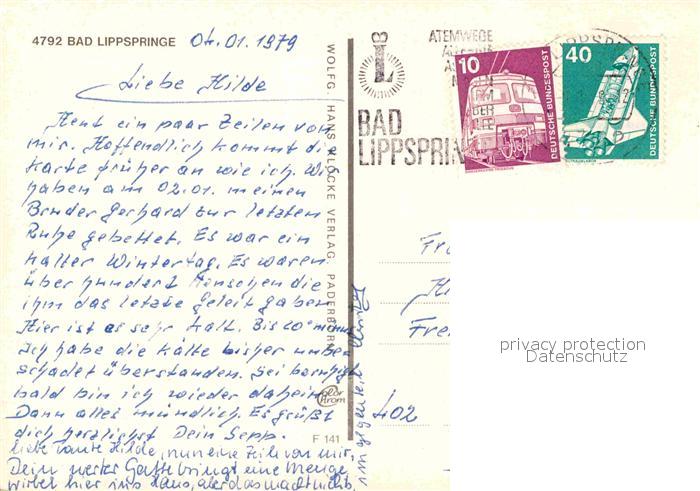72865427 alte Postkarte Bad Lippspringe Fussgaengerzone Springbrunnen Partie am Bach postalisch gelaufen Erhaltung siehe scans [FriedD77] KatCode: 11110005774008