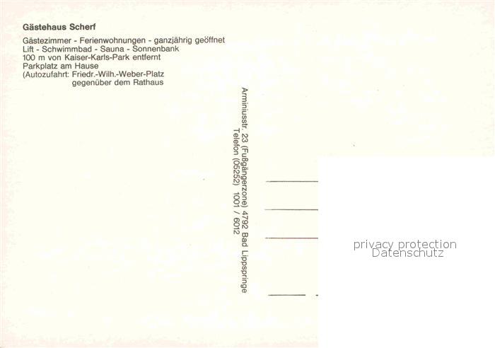 72716821 Bad Lippspringe Gaestehaus Scherf Pension Hallenbad postalisch nicht gelaufen Erhaltung siehe scans [FriedD77] KatCode: 11110005774008