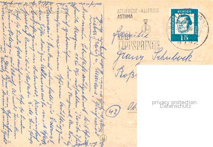 72658243 alte Postkarte Bad Lippspringe Hauptallee Kaiser Karls Park postalisch gelaufen Erhaltung siehe scans [AndreD76] KatCode: 11110005774008