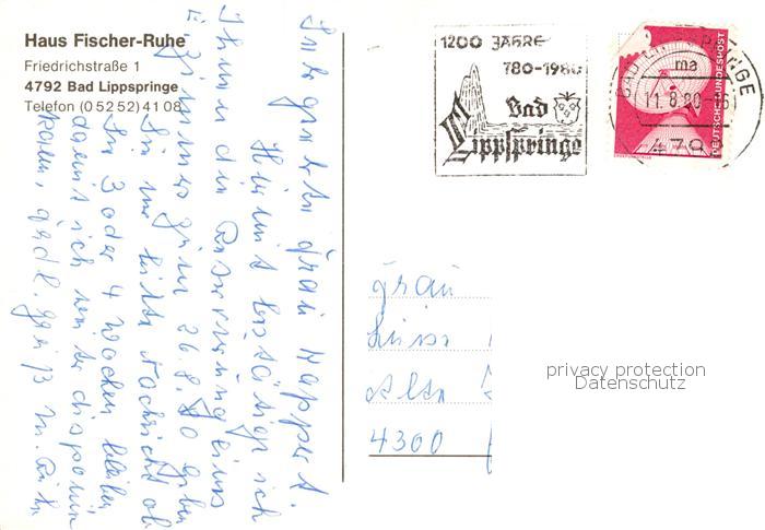 73873838 alte Postkarte Bad Lippspringe Haus Fischer Ruhe postalisch gelaufen Erhaltung siehe scans [WerneD78] KatCode: 11110005774008