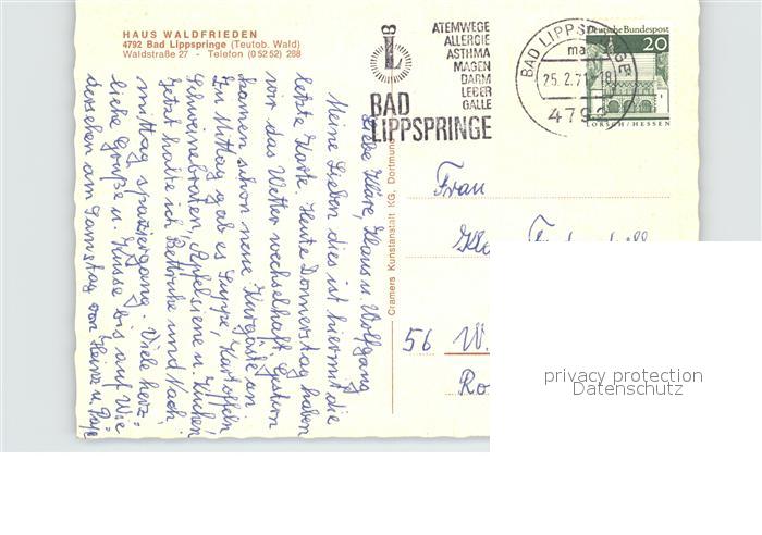72510555 alte Postkarte Bad Lippspringe Haus Waldfrieden postalisch gelaufen Erhaltung siehe scans KatCode: 11110005774008