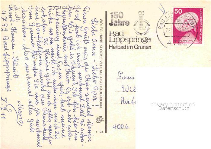 72658244 alte Postkarte Bad Lippspringe Karl Hansen Klinik postalisch gelaufen Erhaltung siehe scans [AndreD76] KatCode: 11110005774008