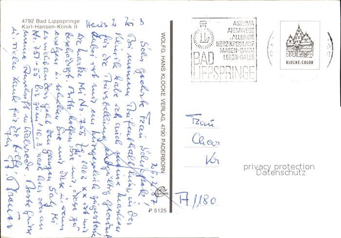 72289592 alte Postkarte Bad Lippspringe Karl-Hansen-Klinik postalisch gelaufen Erhaltung siehe scans KatCode: 11110005774008