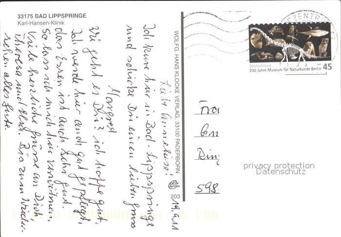 72282348 alte Postkarte Bad Lippspringe Karl Hansen Klinik Quelle Prinzenpalais Kurhotel Burgruine postalisch gelaufen Erhaltung siehe scans KatCode: 11110005774008