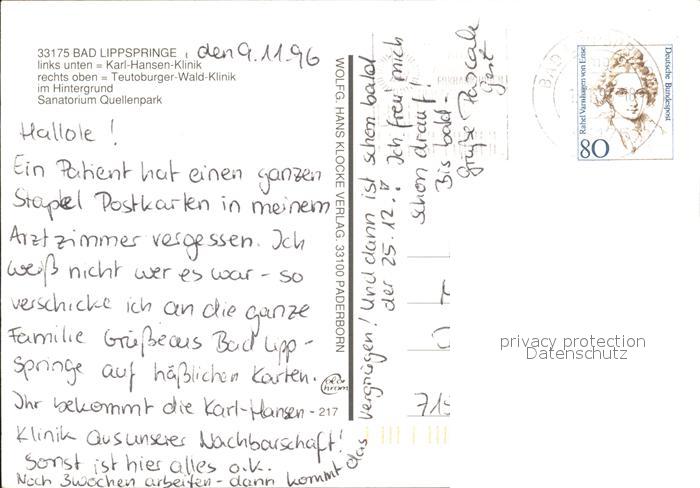 72209180 alte Postkarte Bad Lippspringe Karl Hansen Klinik Teutoburger Wald Klinik Fliegeraufnahme postalisch gelaufen Erhaltung siehe scans KatCode: 11110005774008