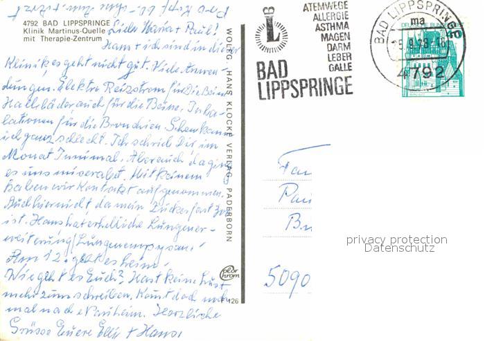 72658242 alte Postkarte Bad Lippspringe Klinik Martinus-Quelle postalisch gelaufen Erhaltung siehe scans [AndreD76] KatCode: 11110005774008
