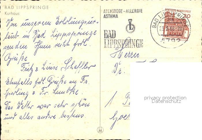 72530122 alte Postkarte Bad Lippspringe Kurhaus postalisch gelaufen Erhaltung siehe scans KatCode: 11110005774008
