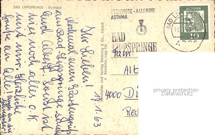 72200314 alte Postkarte Bad Lippspringe Kurhaus postalisch gelaufen Erhaltung siehe scans KatCode: 11110005774008
