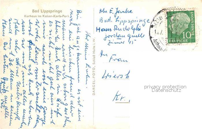 72895305 alte Postkarte Bad Lippspringe Kurhaus Kaiser Karls Park postalisch gelaufen Erhaltung siehe scans [KathaD81] KatCode: 11110005774008
