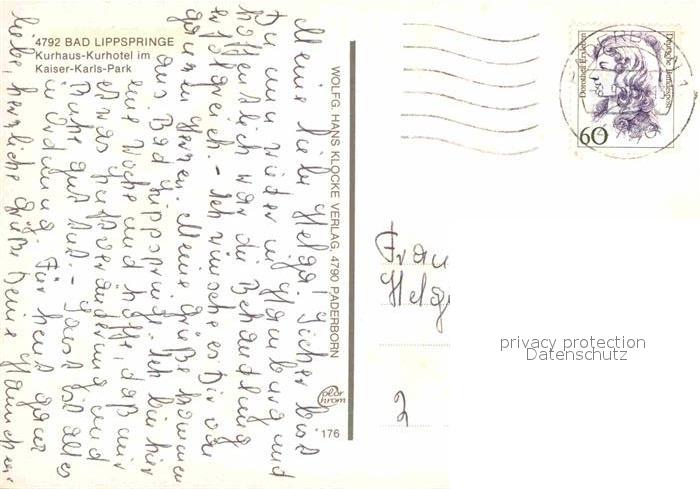 72695195 alte Postkarte Bad Lippspringe Kurhaus Kurhotel im Kaiser Karls Park Springbrunnen postalisch gelaufen Erhaltung siehe scans [FriedD77] KatCode: 11110005774008
