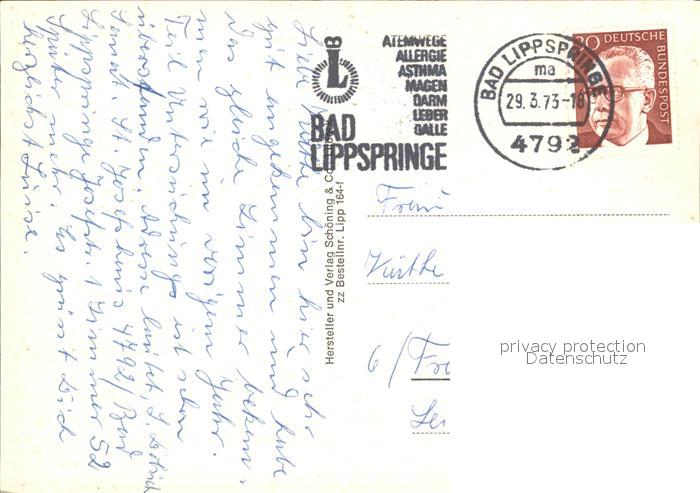alte Postkarte Bad Lippspringe Kurpark Brunnen Fontaene postalisch gelaufen Erhaltung siehe scans