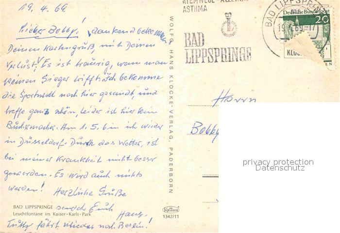 72626558 alte Postkarte Bad Lippspringe Leuchtfontaene im Kaiser Karls Park Blumenbeet postalisch gelaufen Erhaltung siehe scans [FriedD77] KatCode: 11110005774008