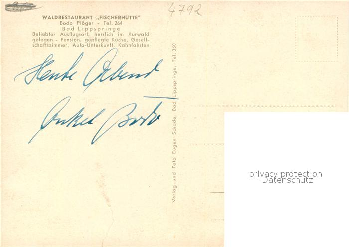 73705637 Bad Lippspringe Waldrestaurant Fischerhuette Eingang Terrasse und Teich postalisch nicht gelaufen Erhaltung siehe scans [LiesaD40] KatCode: 11110005774008