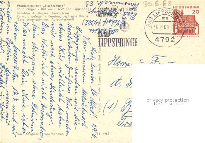 73072487 alte Postkarte Bad Lippspringe Waldrestaurant Fischerhuette Garten mit Teich Eingang Cafe postalisch gelaufen Erhaltung siehe scans [WerneD78] KatCode: 11110005774008