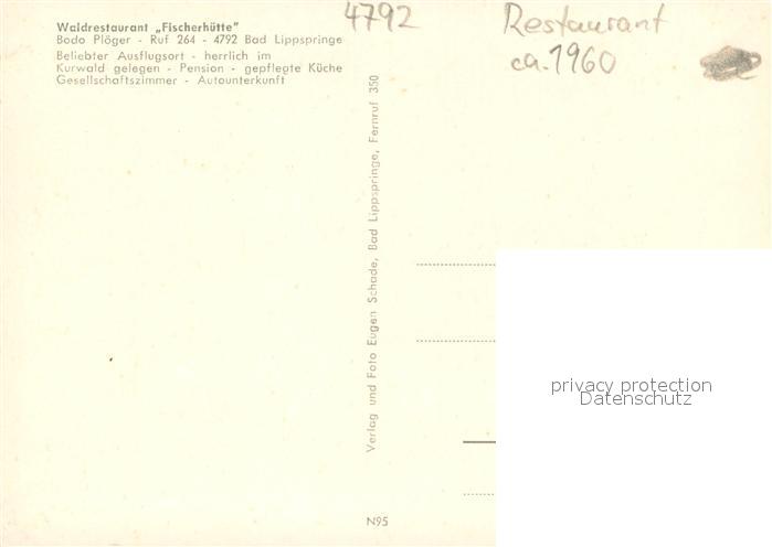73695956 Bad Lippspringe Waldrestaurant Fischerhuette postalisch nicht gelaufen Erhaltung siehe scans [LiesaD40] KatCode: 11110005774008