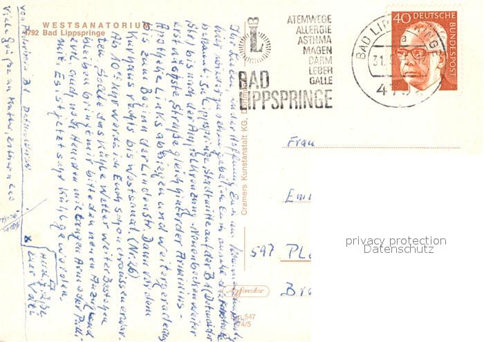 72954611 alte Postkarte Bad Lippspringe Westsanatorium postalisch gelaufen Erhaltung siehe scans [WerneD78] KatCode: 11110005774008