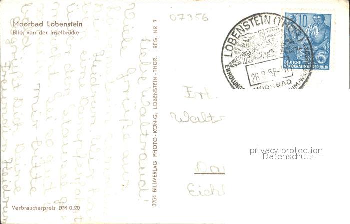 72126959 alte Postkarte Bad Lobenstein Thueringen Blick von der Inselbruecke postalisch gelaufen Erhaltung siehe scans KatCode: 11110016075062