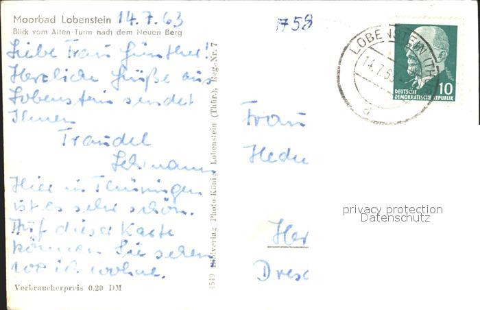 72043283 alte Postkarte Bad Lobenstein Thueringen postalisch gelaufen Erhaltung siehe scans KatCode: 11110016075062
