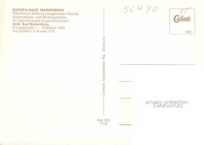 72901396 Bad Marienberg Europa-Haus postalisch nicht gelaufen Erhaltung siehe scans [NatalD47] KatCode: 11110007143206