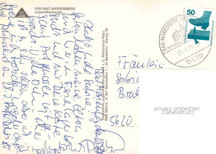72725877 alte Postkarte Bad Marienberg Jugendherberge postalisch gelaufen Erhaltung siehe scans [WerneD78] KatCode: 11110007143206