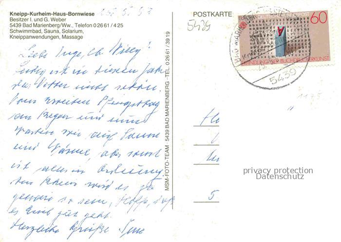 74040994 alte Postkarte Bad Marienberg Kneipp Kurheim Haus Bornwiese postalisch gelaufen Erhaltung siehe scans [WerneD78] KatCode: 11110007143206