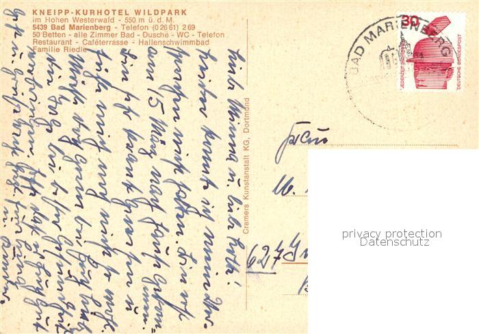 73569519 alte Postkarte Bad Marienberg Kneipp Kurhotel Wildpark postalisch gelaufen Erhaltung siehe scans [WerneD78] KatCode: 11110007143206