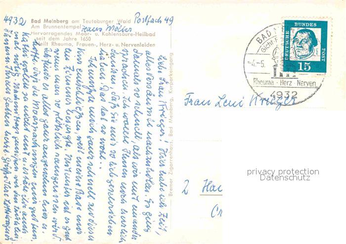 72688017 alte Postkarte Bad Meinberg Am Brunnentempel Heilbad postalisch gelaufen Erhaltung siehe scans [FriedD77] KatCode: 11110005766032