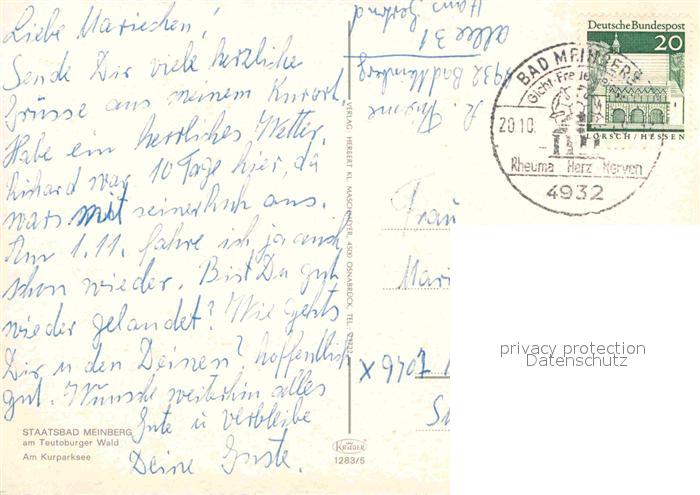72617469 alte Postkarte Bad Meinberg Am Kurparksee postalisch gelaufen Erhaltung siehe scans [WerneD78] KatCode: 11110005766032