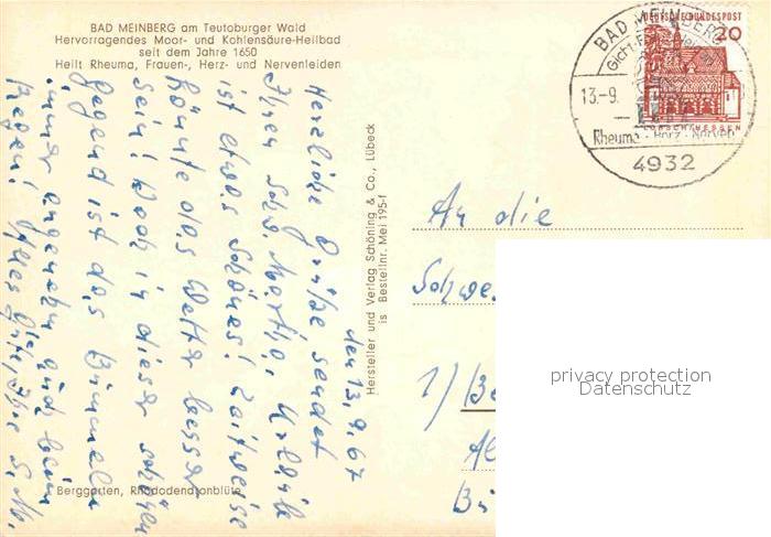 72670127 alte Postkarte Bad Meinberg am Teutoburger Wald postalisch gelaufen Erhaltung siehe scans [LiesaD40] KatCode: 11110005766032