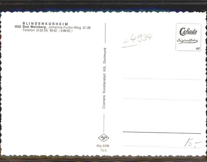 41540000 Bad Meinberg Blindenkurheim Kantine Speisesaal KatCode 11110005766032
