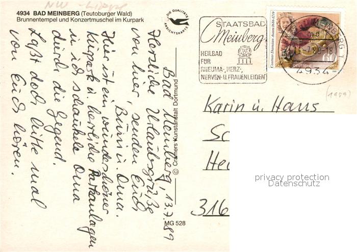 73019389 alte Postkarte Bad Meinberg Brunnentempel Konzertmuschel Kurpark postalisch gelaufen Erhaltung siehe scans [NatalD47] KatCode: 11110005766032